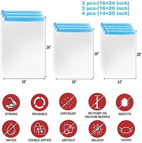 TRAVEL ACCESSORIES – Each of our vacuum storage bags passes strict quality control standards and ensures long-term compressed storage. Including 3 sizes, 4 Pcs Small 20×14”, 3 Pcs Medium 20×16”, 3 Pcs Large 24×16”