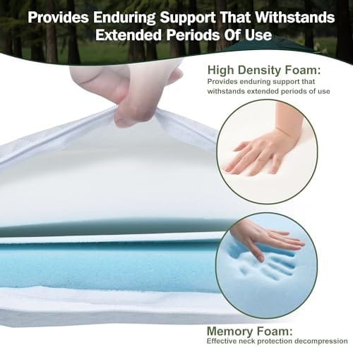 [Ideal Partner for Every Sleeper]:Our travel neck pillow features a double-layer design made of high-density foam and memory foam, avoiding the clumping or warping that is a common problem with shredded foam pillows. Memory foam fits and bounces back to aid deep sleep, while high-density foam provides firm support for those who need extra neck support
