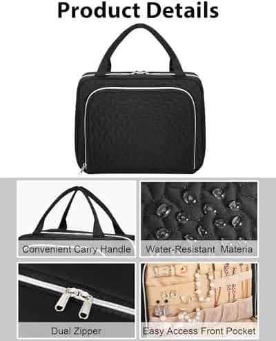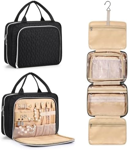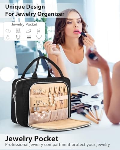Extra Jewelry Compartment : Lhelca toiletry travel bag is design with jewelry organizer compartment. It is more than a toiletry bag, but also a jewelry organizer. dding a compartment in the front pocket of travel bag for rings, ear rings, bracelets, bangles, necklaces, and other jewelries, meeting your travel toiletries and makeup needs.