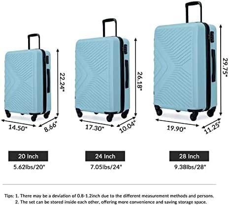 【Family Luggage Set For 3】Hardshell luggage sets include underseat 20″ carry-on luggage, 24″ checked in luggage and 28″ large luggage with spinner wheels. The suitcases can be nested inside each other to enhance space utilization. Perfect family travel luggage set.