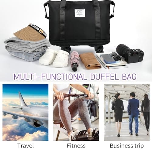 【Multi-Purpose Duffel Bags for Traveling】This women’s weekend bag meets a variety of needs. Its perfect size makes it ideal for packing essential clothes, electronic devices, pants, shoes, and toiletries for short trips lasting 5-7 days. It’s well-suited for numerous occasions, including sports activities, travel, weekend getaways, shopping, hiking, and camping. you can use this weekender bag as overnight bag, travel gym bag, or expandable luggage bag for all your adventures